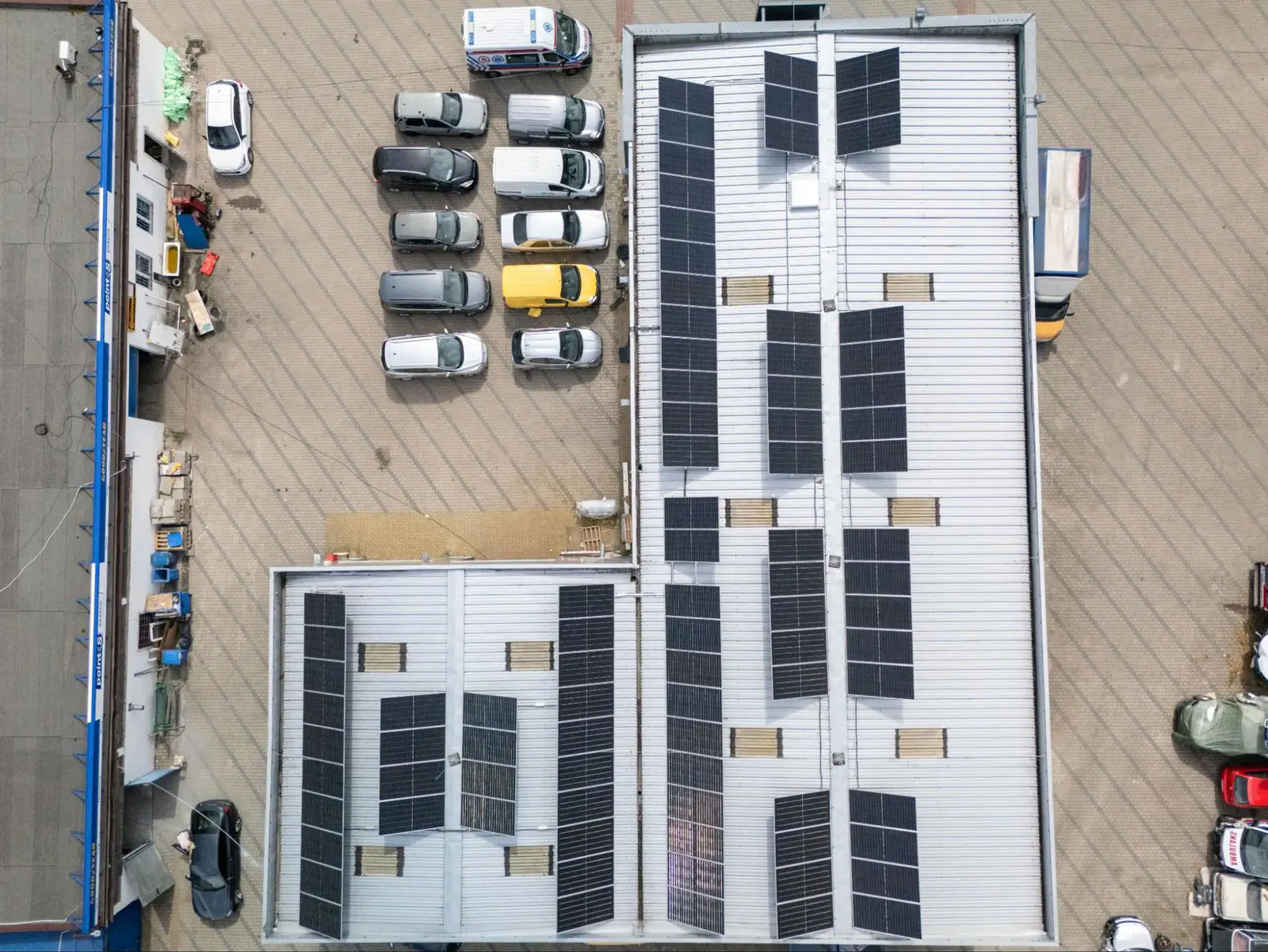Na dachu budynku warsztatu samochodowego wykonaliśmy instalację fotowoltaiczną o mocy 50 kWp.